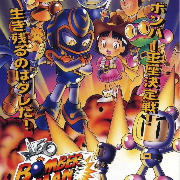 街机平台《NEO炸弹人机皇版》(日语原名:ネオボンバーマン;英语原名:Neo Bomberman),由Hudson Soft开发发行,是《炸弹人》系列经典街机作品,于1997年5月1日全球首发,仅推出Neo Geo MVS街机卡座版本,无家用机版,主打动作迷宫类休闲竞技体验。 游戏延续系列核心玩法,玩家操控机器人在迷宫场景中放置炸弹,消灭敌人、摧毁障碍物以寻找隐藏出口过关。主角形象源自《淘金者》系列敌人设计,自带系列联动彩蛋。关卡共50局,每局设时间限制,超时会出现强力敌人,不同敌人属性各异,需针对性应对,玩法兼具策略性与趣味性。 游戏含剧情冒险与挑战两种模式,支持单人闯关及双人协作/对战,道具系统丰富,可拾取强化炸弹威力、移动速度等道具,部分场景还能解锁怪物坐骑。作为街机后期炸弹人代表作,其简洁画风、爽快操作与多人互动性,成为不少玩家的街机厅回忆,是休闲动作题材的经典佳作。