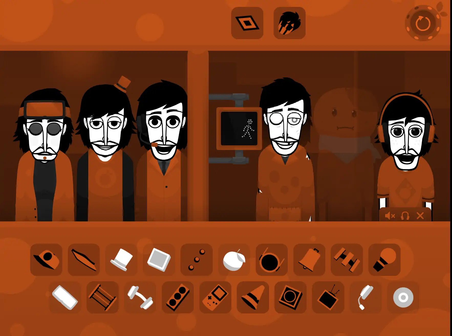 国外玩家自制模组 《节奏盒子:橙色》是一款独具魅力的音乐节奏游戏,以鲜明的橙色为主色调,构建出充满活力与创意的游戏世界。 在游戏中,玩家将邂逅多位风格迥异的角色,他们身着橙色系服饰,形象或搞怪、或个性,每个角色都具备独特的音效属性。屏幕下方排列着丰富多样的橙色图标,涵盖帽子、眼镜、水果、电器等元素,轻点并拖动这些图标至角色身上,即可触发对应的音效。通过不同图标的组合,玩家能够自由创作,编织出嘻哈、电子、流行等多元风格的动感旋律。