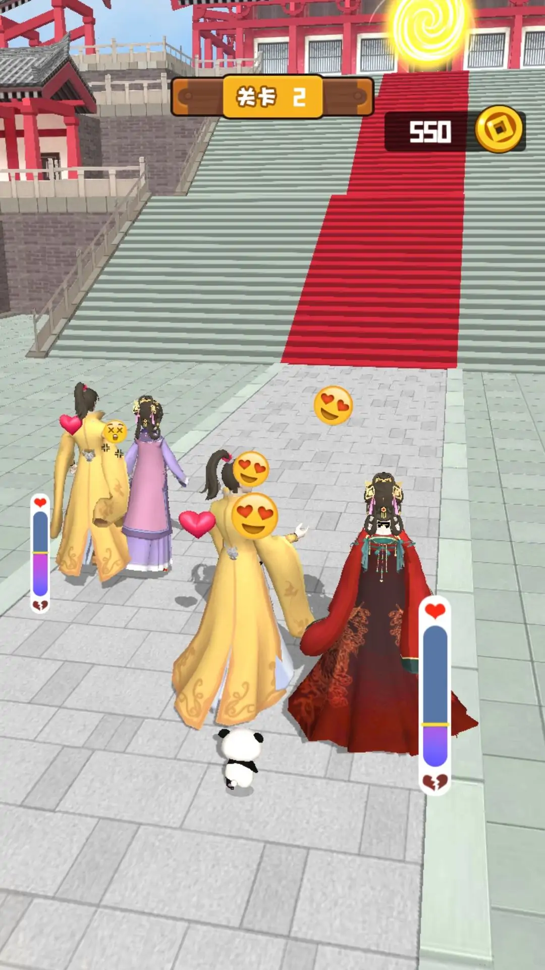 这是一款3D休闲闯关游戏,在游戏中情侣两人可以通过拾取道具增加亲密度,不好的道具会降低情侣之间的亲密度,注意躲避,让我们一起来帮助他们,让他们的感情更加的亲密。在游戏中还可以搞其他恶作剧哦,让其他情侣的感情变坏,该游戏还有更多好玩的关卡供玩家挑战,让我们一起来体验一下吧!