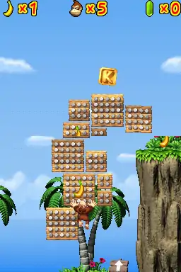 《大金刚:丛林攀跃》——NDS横版平台跳跃游戏,操控金刚父子荡藤蔓、砸木桶,关卡设计充满任式创意。