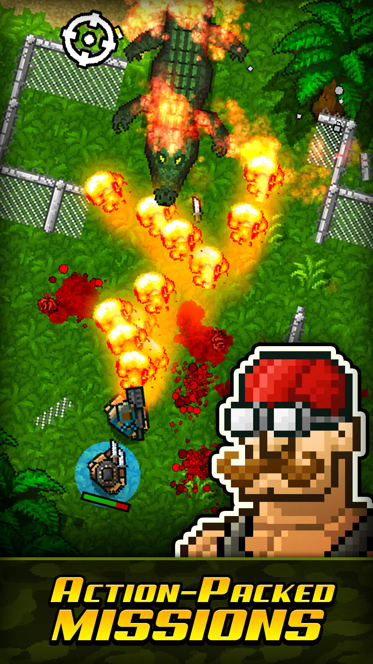 锁定并加载!是时候体验这款不间断、复古、自上而下的射击游戏了。 是时候滚动了。拿起你的机枪、火焰喷射器、火箭发射器和手榴弹。攻击敌人的基地,释放突击队加入你的团队,同时摧毁眼前的一切。 敌人越来越大胆地在全球蔓延,这使每个人都变成了无脑的僵尸般的部落。如果敌人不尽快停止,我们所知道的世界将不复存在。您已被选中领导全球范围内的终极任务,以营救您的战友,消灭所有敌人的基地,并杀死遇到的其他所有人!