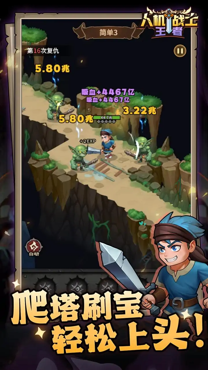 《人机战士王者》是一款融合了消除元素的轻松挂机类游戏。在这个游戏中,玩家将扮演一名勇敢的战士勇闯地下城。通过地下城获得的装备强化自身力量,通过地下城获得的符石来释放各种各样的技能。游戏不仅拥有简洁明快的画风,还大胆的将轻度消除与挂机结合了起来,使得玩家在挂机的时候又不会至于太无聊。同时,游戏中的关卡数量众多,为玩家创造很多可一直持续挑战的目标