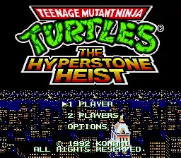 1992年12月21日发售的《忍者神龟》系列闯关游戏。 施莱德偷走了强大的超能石来缩小纽约市,这取决于你来教那个奸诈的捣蛋鬼不要和无所畏惧的四人组捣乱!选择你最喜欢的Cowabunga突击队,对5个无法无天的等级进行猛烈抨击。四个关卡各有三个紧张的阶段,而另一个关卡则充满了全新的挑战,这将让你扔出你的披萨午餐。在他把我们整个星球都掏出来之前,把“快乐收缩施莱德”碾碎! MD的首款《忍者神龟》游戏,日版名为《忍者神龟:施莱德归来》,副标题中的“超能石”来自X空间,施莱德用这块魔法石把纽约变为一座微缩模型,神龟自然要把城市恢复原样。本作的系统基本沿用自SEC的4代,把敌人丢到屏幕上的投技被取消,操作则新增了专用的冲刺键,方便了玩家。关卡一部分沿用自4代,一部分是2代的复刻,另一部分是原创,让玩家既熟悉又新鲜。歌曲针对MD的声音芯片也做了不错的编排。