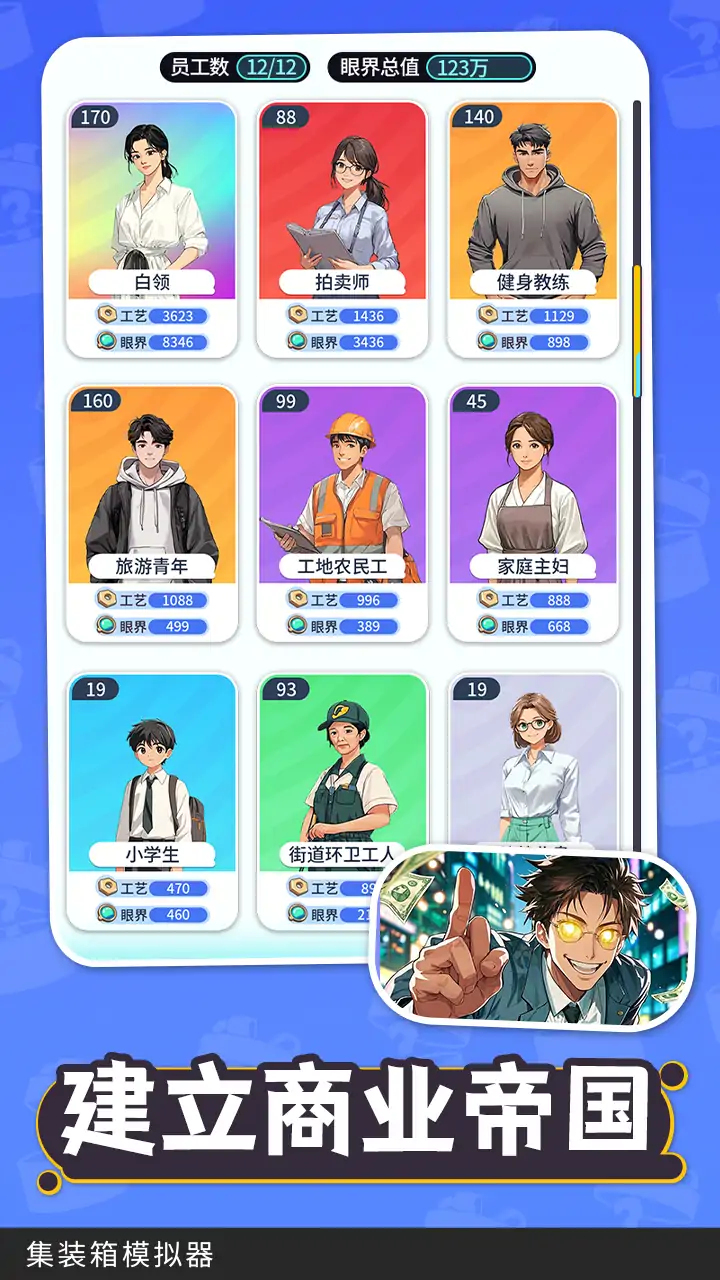 《集装箱模拟器》是一款满世界买集装箱,每次拍卖都是开盲盒体验的模拟经营游戏,玩家将扮演一位独具慧眼的商人,寻找那些隐藏的传闻宝物,你将会与世界各地不同的商人进行竞拍博弈,时刻充满着不确定性。同时你还可以通过市场售卖、地区展览来为你累积财富,丰富的员工系统更能让你解放双手,快速的建立起属于自己的商业帝国!快来《集装箱模拟器》开启你的财富之旅吧! 游戏特色: 1.【全球寻宝】:穿梭世界各地港口码头,寻找隐藏宝藏集装箱,开启冒险之旅。 2.【心跳盲盒】:每次开启集装箱都是拆盲盒,古董、限量收藏品、高科技产品等你发现。 3.【商业经营】:运用商业头脑经营宝物,买卖交易积累财富,打造专属商业帝国。 4.【策略乐趣】:策略与运气结合,感受经营乐趣与成就感,开启财富之旅。 5.【解放双手】:地区展览、员工寻宝让你彻底解放双手,实现躺平的睡后收入。