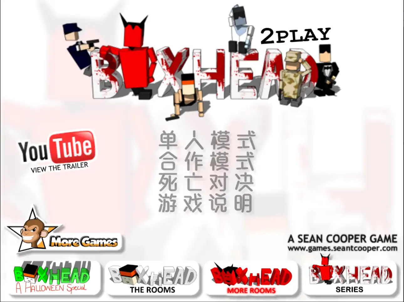 非常火爆的射击游戏,游戏增加了新的双人模式。共有三个游戏模式:第一项为单人模式、后面两个都是双人模式。 僵尸危机3原名盒子头3是由Sean Cooper创作并由Crazy Monkey Games赞助的系列游戏。主角乔恩·斑博(Jon Bambo)这个角色的爱好似乎是击杀僵尸和制造爆炸。极其有趣且令人上瘾的游戏玩法,使游戏在世界各地的玩家中倍受青睐。 游戏已更新为中文版 汉化:晓之车