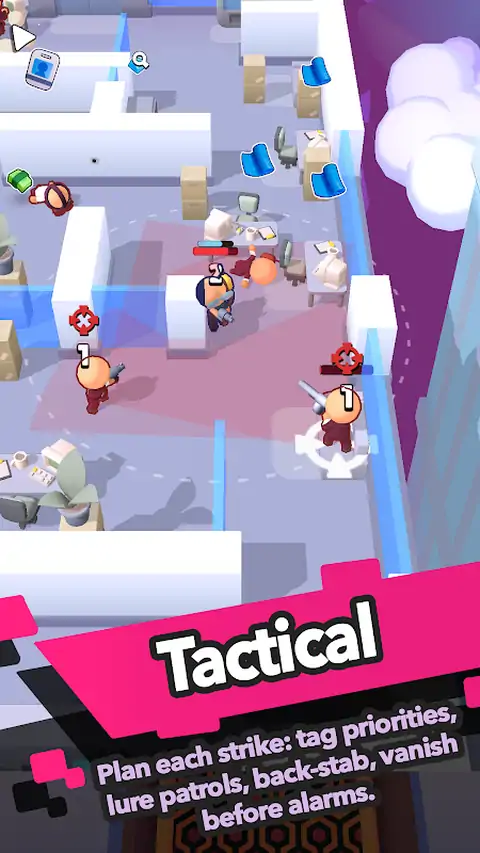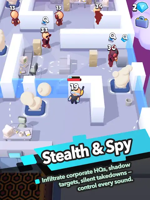 间谍与杀戮—一款霓虹黑色赛博朋克风格的俯视角潜行 Roguelite 移动射击游戏。 城市闪耀着霓虹粉色,广告牌上宣传着 EvilCorp 的“万能药”。 你的未婚妻相信了承诺…然后变异病毒吞噬了她。在 EvilCorp 的诊所,保安给了你一个封口费箱子:“没有治愈方法!副作用在可接受范围内…” 今晚你消失。明天你化作阴影回归。从屋顶通风口到地下实验室,你将侦察、击杀并揭露每一个身着盔甲的怪物…或者为此付出生命。 主要特色 • 潜行与间谍—潜入企业摩天大楼,入侵摄像头,*静默击杀*,并控制每个脚步声。 • 战术战斗—标记高价值目标,引诱巡逻队,从背后袭击并潜入通风口。一招制胜。 • 电影级刺客击杀—触发慢动作终结技和帅气爆头,让每次战斗都值得分享。 • 快速升级—Roguelite 进程—每层都升级:一次任务即可从 1 级新手跃升至 15 级暗影大师。技能可随时重塑你的体型。 • 自适应敌人 AI—守卫包抄、呼叫支援、设置陷阱。智胜他们—否则将成为明日头条。 • 多样化武器和装备—切换匕首、消音冲锋枪和雷霆战锤。每种武器都拥有独特的模组、动画和玩法。 • 史诗级 Boss 战—直面体型庞大的多阶段 Boss,解读模式,打破护盾,夺取稀有科技战利品。 • 霓虹黑暗世界—雨水湿滑的街道、闪烁的广告、隐藏着腐烂尸体的无菌实验室。合成浪潮与企业恐怖的碰撞。 • 单手竖屏射击游戏 - 专为移动设备打造的自上而下自动射击设计:随时随地畅玩。 立即下载《Spy & Slay》。霓虹之下,真相鲜血淋漓! 路线图 游戏目前以抢先体验版发布,包含其核心潜行循环、首个霓虹闪烁的诊所塔以及超过 15 种武器库,但开发工作正在紧锣密鼓地进行中:即将推出的更新将解锁故事章节、全新机制、Boss 和更强大的 AI。您的反馈将决定游戏的抢先体验!
