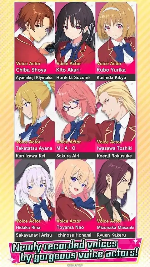 挑战你的思维,驾驭阴谋,并在竞争中脱颖而出! 欢迎来到《实力至上主义教室》官方手游版的精英殿堂 --沉浸式视觉小说体验 重温热门动画中的经典场景,深入探究一年级D班的秘密。扮演绫小路清隆,在这部紧张刺激的校园心理剧中,做出影响你人生轨迹的选择。 --策略玩法与社交操控相遇 管理你的班级积分,结成联盟,并在错综复杂的竞争和政治网络中游刃有余。在高风险活动中智胜你的对手,你的决定至关重要——而且并非每个人都是表面看起来的那样。 --独家全新剧情 探索由原作者监制的原创剧情和前所未见的角色互动。发现你喜爱角色不为人知的一面,塑造全新的角色成果。 --精美的美术和配音 欣赏动画原班人马的精美角色插画和全日语配音,让故事以前所未有的方式栩栩如生。 操控。生存。攀登。 谁将在这场精英学术之战中脱颖而出?