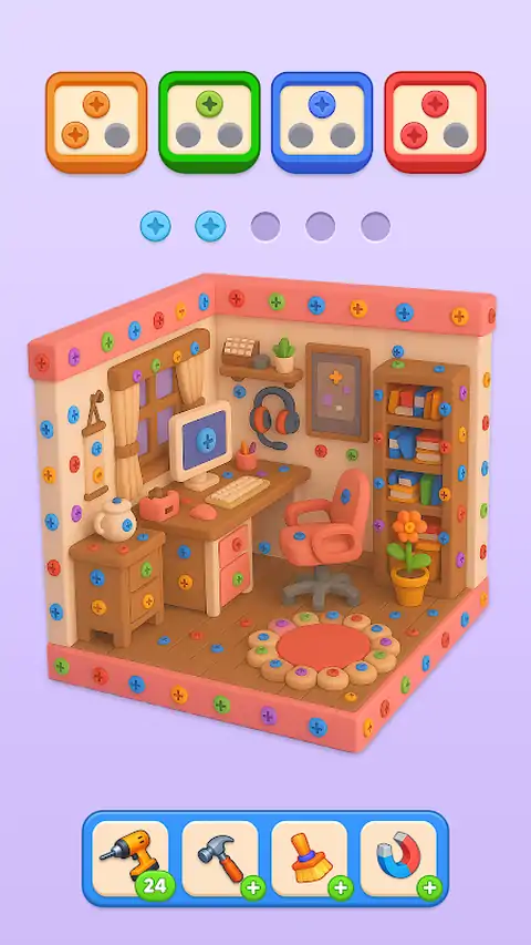 《螺丝狂热 3D》是一款充满活力的分类益智游戏,将逼真的 3D 螺丝模型与令人上瘾的颜色匹配挑战相结合。滑动、扭转并按颜色分类螺丝,以清除面板,解锁新的房间,并征服数百个令人费解的关卡。 怎么玩 点击并拖动:在详细的 3D 环境中沿着轨道、管道和传送带滑动螺丝。 颜色分类:将三个或更多相同颜色的螺丝组合在一起,使它们消失。 旋转您的视图:捏合以缩放并扭转以导航复杂的路径。 解锁关卡:解决难题以打开大门,揭示秘密房间,并通过越来越具有挑战性的阶段。 主要特点 创新的 3D 机制:具有逼真的螺丝物理和动态动画的分类益智游戏的全新玩法。 数百个关卡:从简单的介绍到复杂的颜色分类谜题,将测试您的空间推理能力。 道具和助推器:激活扳手、磁铁、时间冻结工具和彩虹螺丝,以克服棘手的布局。 每日奖励和活动:每天领取免费金币、特殊皮肤和限时挑战。 离线和在线游戏:随时随地享受 3D 螺丝狂热 - 无需互联网连接。 令人惊叹的视觉和声音:清晰的图形、流畅的过渡和轻松的配乐使每场比赛都令人满意。 为什么你会喜欢《螺丝狂热 3D》 休闲而又令人上瘾:非常适合快速脑力休息或长时间的策略课程。 脑筋急转弯乐趣:在每个关卡中提高您的颜色分类和空间技能。 定期更新:根据玩家反馈推出新关卡、皮肤和功能。 立即下载 3D 螺丝狂热 准备好迎接狂热吧—立即安装《螺丝狂热 3D》,证明您是终极 3D 分类拼图大师!