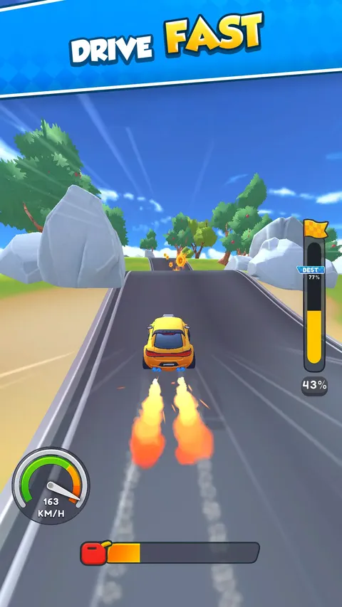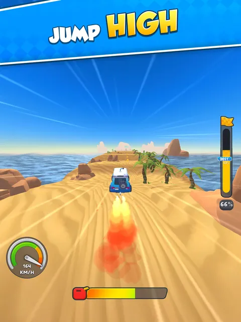 跳跃。落地。加速。升级。循环往复! 踩下油门,准备在布满斜坡的赛道上狂野驰骋,一次完美的落地就能让你冲上更高的关卡! 征服斜坡 按下加速,松开飞行,在下坡时落地,完美落地并获得极致加速! 油箱滴答作响——你能跑多远? 油箱耗尽时,你的旅程就结束了——所以要珍惜每一次跳跃! 升级你的座驾 使用你的金币来提升你的赛车速度和油箱容量。更好的数据=更大的跳跃、更长的奔跑和更快的进步。 解锁新关卡和赛车 闯过关卡?太棒了!是时候跳上一辆全新的赛车,挑战设计狂野、充满挑战的新赛道了。 快速、轻松、令人上瘾 简单的一键式操控和短暂却令人满足的奔跑,使这款游戏成为完美的上手即玩的游戏。但要注意——一旦开始,就很难停下来! 准备好了吗?在这场高空驾驶冒险中,完美你的跳跃并解锁你的下一程旅程!