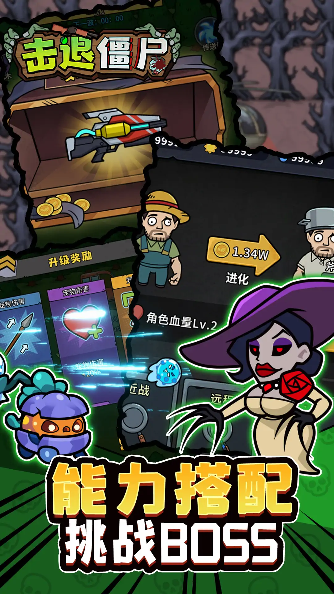 《击退僵尸》是一款融合废土末日与搞怪萌系的策略战斗游戏!在丧尸横行的世界里,你将组建独一无二的植物炮塔军团——从吐豌豆的射手到呆萌向日葵,搭配萌宠助战,暴揍成吨僵尸!通过深度养成系统升级武器:从初始小刀到炫酷光剑,解锁科技强化炮台威力;自由组合局内策略卡牌!无论是单人闯关还是无尽挑战,都能体验从菜鸟到末世战神的成长之路。幽默画风搭配硬核策略,这场废土狂欢就等你开战!
