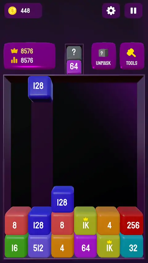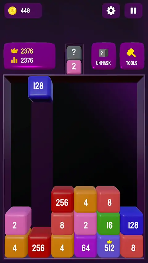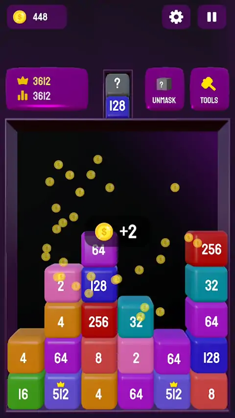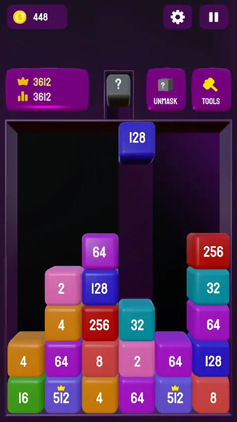 2048 Blocks 3D 是一款有趣且令人上瘾的数字合并益智游戏,具有 3D 风格!合并匹配的方块以创建更大的数字,并尽可能长时间地保持棋盘畅通无阻。 使用强大的工具来保持控制: 移除方块 - 粉碎并删除您选择的任何方块。 删除行 – 清除整行以腾出更多空间。 向上移动方块 – 将任何放置的方块送回顶部以获得第二次机会! 享受令人满意的视觉效果、流畅的游戏玩法和无尽的数字合并乐趣。 非常适合 2048 游戏、合并拼图和 3D 脑筋急转弯游戏的粉丝! 你能得分多高?