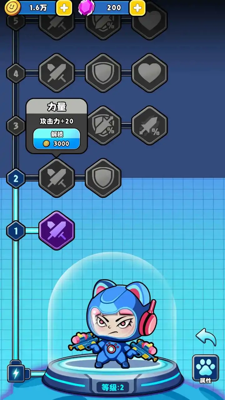 《红月之心》是一款太空题材的休闲割草类小游戏,游戏中玩家通过操作角色进行走位、升级,不断消灭蜂拥而来的怪物来推进关卡进行游戏。在游戏过程中,消灭怪物后会随机掉落经验球,吃掉经验球可以增加对应的经验值,当经验值达到一定的条件后会触发技能升级,不同的技能升级可以给角色带来不同的能力提升,可以更有效的消灭或躲避怪物。在玩家持续升级杀怪过程中,会遇到“敌群来袭”和“ 首领来袭”两个事件,敌群来袭时会突然产生一大波的怪物,急速冲向玩家。当首领来袭时,会出现一个围栏以及一个巨型怪物,玩家只能在围栏区域内与首领缠斗,当首领被消灭后,围栏消失,逐渐地怪物们会从外围继续冲向玩家。当玩家在指定时间内保持存活状态,则本关卡胜利,玩家死亡则失败。