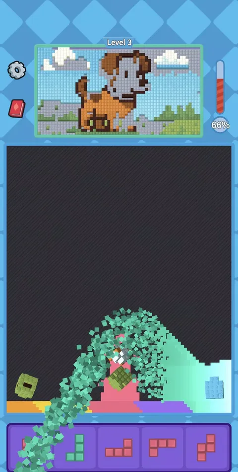 滑动沙砖铺满整行,爆破消除掘出隐藏拼图块!看碎片腾空飞起自动拼合,完成200+治愈系拼图后,赚家具币自由装扮梦想小屋—从温馨书房到喵星角落,亲手筑造每个细节! 为何让人上头? 解压覆盖消除 → 拖动沙砖如水流铺展,“沙啦!”一声爆破爽感炸裂! 拼图飞天自组 → 碎片“咻~叮!”自动归位,强迫症治愈瞬间! 小屋自由装扮 → 拼图结算领家具币,沙发/绿植/挂画随意搭配你的小宇宙! 玩法三步曲 【铺】拖沙砖盖满横线 → *沙啦!爆破!* 【拼】掘出碎片腾空自组 → *咻~叮!拼图完成!* 【造】赚家具币装扮小屋 → *自由布置梦想空间!* 特色亮点 200+主题拼图:田园厨房、星空阁楼、咖啡书吧…每幅拼图解锁专属家具! 道具神助攻: → 刷新(使预备栏方块更新) → 消色(选一种颜色全部消除) → 铲沙(铲掉一整层沙子) 沉浸音效: 覆盖声“砰砰”,筑造声“溪溪” 无网离线游戏也能玩:占手机内存比1张照片还小