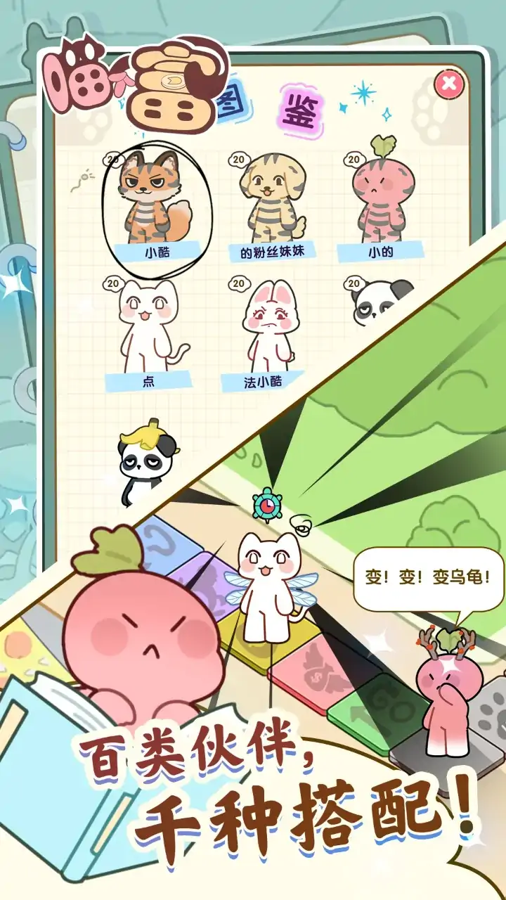 《喵了个富》是一款融合大富翁地产争夺+模拟经营养成的萌系休闲竞技游戏。 主角反内卷达喵:猫蝶蝶决定远离职场,带着2颗神奇的骰子环游世界。旅途中发生了各种神奇有趣的事件,同时也遇到了许多萌萌的小伙伴。 游戏中玩家扮演的角色可以通过骰子“掷”理自己的城市,解锁更多奇妙场景;也可以携带强力伙伴出征,进行一场轻松且刺激的4人对战,斗智斗勇!抢夺地产!决胜首富!