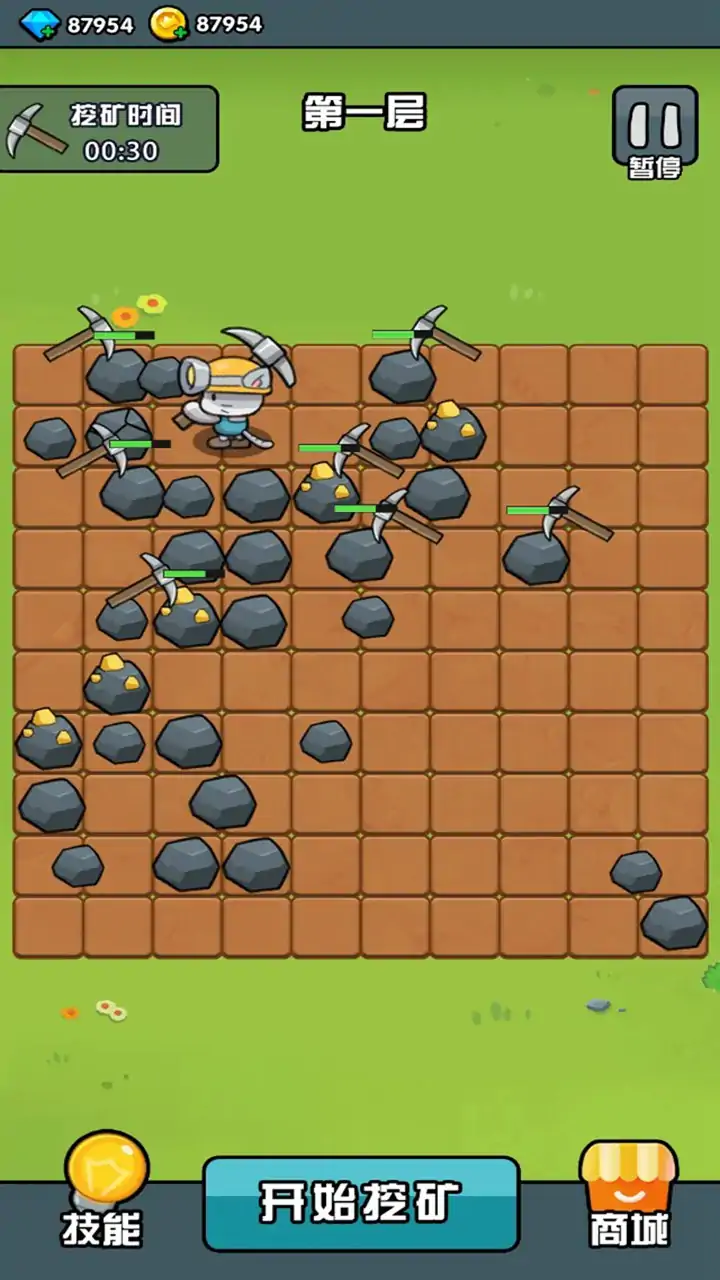 一款融合挖矿探索、藏品收集、属性养成与田园种植的休闲治愈类游戏。玩家将化身奇幻世界的探索者,从一片平凡土地出发,亲手挖掘并打造专属于自己的地下秘境花园,在轻松的互动中感受探索与创造的双重乐趣。 核心玩法:挖矿探索 —— 解锁地下秘境 挖矿是开启地下花园的核心途径。玩家将进入专属的挖掘区域,通过按住屏幕并移动的操作进行挖矿,与矿石互动时会触发对应的挖矿动画。矿石会随受击程度呈现不同外观变化,被成功挖取后还会有专属清除动画,挖掘所得将作为核心资源用于后续养成与结算。挖掘过程中,还能随机获得特殊道具 “化石”,为探索增添惊喜感。 核心玩法:收藏馆 —— 发掘珍稀藏品 挖到的化石可在 “收藏馆” 中进行解锁。玩家点击化石即可进入敲击界面,通过多次敲击互动(伴随动画反馈),最终能从化石中开出各类珍稀藏品。这些藏品会陈列在收藏柜中供玩家观赏;若抽到重复藏品,将自动转化为游戏内货币,助力后续养成。 核心玩法:属性强化 —— 优化挖掘体验 主界面设有专门的属性强化入口,玩家可消耗游戏内货币,从多个维度优化挖矿相关能力,让后续的挖掘过程更高效、更顺畅。 核心玩法:田园种植 —— 培育奇幻植物 拥有多层种植空间,玩家可在格子中播种培育植物。种子会经历多个阶段的外观变化,成熟收获后可获得特殊资源 ,为后续游戏内容储备潜力。