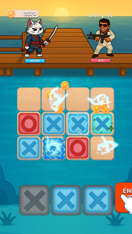 ❌⭕井字战士是一款益智角色扮演游戏。 井字战士向你问好!这款游戏融合了益智角色扮演策略、刺激的战斗玩法和井字棋机制,堪称益智游戏的巅峰之作!如果你正在寻找一款能够考验你的思维、奖励你的策略并带来持续刺激的手机游戏,那么井字战士就是你的理想之选。 井字战士:它是什么? 传统的井字棋盘在井字战士中被重新构想,变成了一个真正的战斗竞技场。你的每一个动作都会对战场产生战术影响,而不仅仅是简单的点数和方向。通过战略性地部署你的部队并使用强大的力量,你就能击败你的对手。 井字棋战士的关键要素 ✔ 全新构想:经典桌游井字棋被赋予了激动人心的战斗系统。 ✔ 益智角色扮演游戏机制:随着英雄和技能的升级,你必须解决战略难题。 ✔ 史诗般的战斗:应对一波又一波的敌人、凶猛的对手和强大的头目。 ✔ 独特的战士和技能:收集并强化每个拥有独特技能的角色。 ✔ 战略深度:每个行动都至关重要;预测对手的策略并巧妙应对。 ✔ 离线游戏:无需在线连接,随时随地即可战斗。 ✔ 生动的视觉效果和动画:进入一个充满活力、充满刺激的战斗环境。 井字战士的与众不同之处 虽然许多游戏都提供回合制战斗,但井字战士却带来了全新的玩法:每一步都发生在井字战场上。这意味着走位、连击和时机与实力同样重要。这款游戏将益智角色扮演游戏、井字游戏和战斗策略巧妙融合,创造出一种你在其他任何地方都找不到的体验。 你不能只是发动攻击——你需要提前思考,构建连击,并像一位真正的战术大师一样掌控棋盘。你会困住对手,发动毁灭性的连锁反应,还是坚守阵地,等待最佳时机出击? ⚔️ 战斗体验 将你的战士放置在井字棋棋盘上。 通过排列英雄并触发他们的技能来构建你的连击。 在回合制战术战斗中击败敌人。 挑战拥有独特能力的史诗级 Boss,考验你的策略。 闯关升级,解锁全新挑战,成为终极井字棋战士。 适合所有玩家 无论你是追求快速乐趣的休闲玩家,还是热爱益智角色扮演游戏的硬核策略高手,井字棋战士都能满足你的需要。得益于熟悉的井字棋规则,这款游戏易于上手,但要精通则需要创造力、计划和耐心。