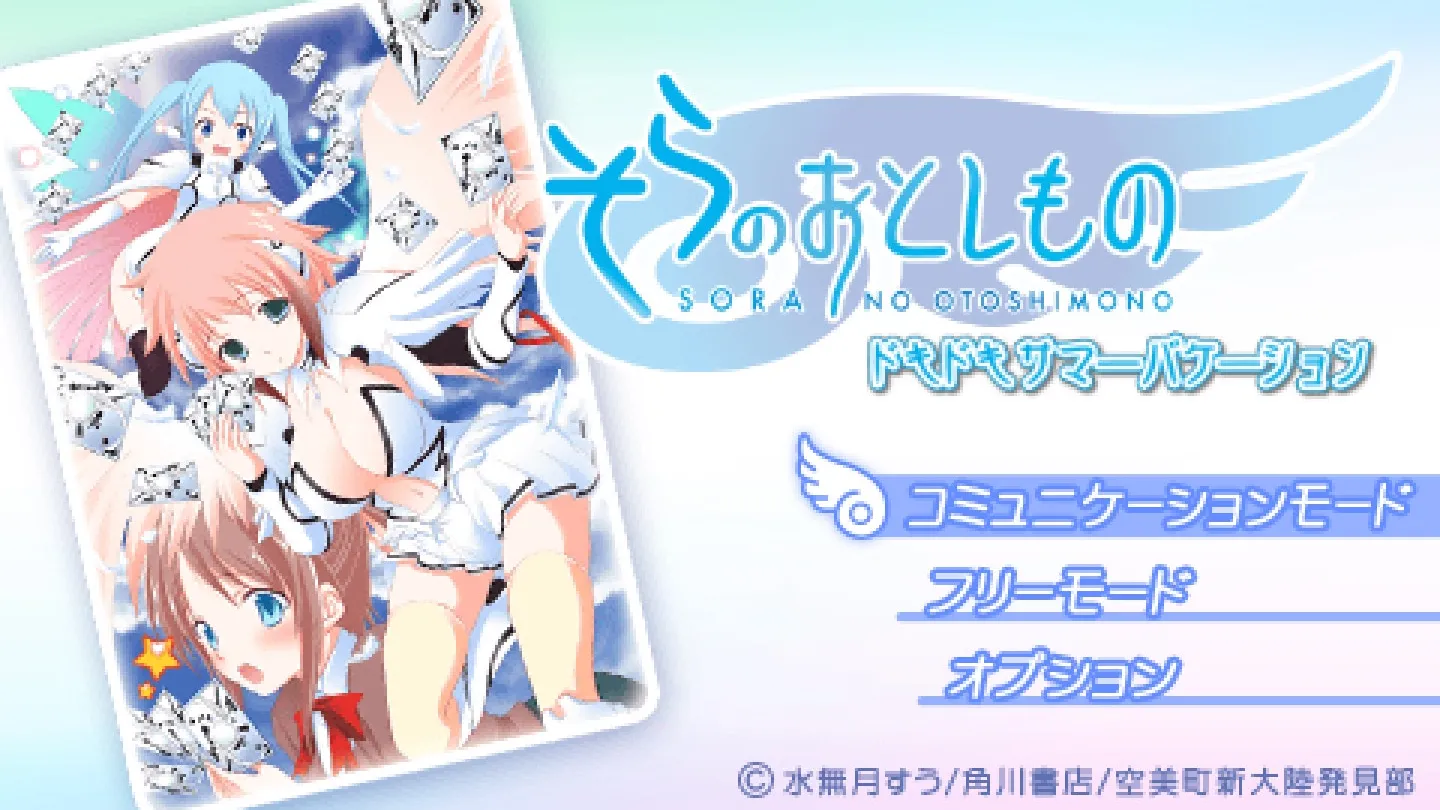 PSP游戏《天降之物 心跳的暑假》(原名:Sora no Otoshimono: DokiDoki Summer Vacation)2010年3月25日由Kadokawa Shoten发行的互动冒险游戏,改编自动漫原作,聚焦主角樱井智树在宁静空美町的夏日奇幻经历,延续原作核心设定与氛围。 樱井智树居住在古朴的空美町,日常以偷窥为乐,本想就此平淡度日,却因一晚的意外彻底改变人生——他在等待友人时,目睹天降物体化为粉色头发、背生天使翼的女性天使伊卡洛斯,两人缔结羁绊后,智树的生活迎来巨变。游戏以蝉鸣奏响的夏日为开篇,空美町居民齐聚温泉、海滩、公园等场所休闲,主角团在此背景下互动,借助卡片魔法推进原创剧情,还能对冒险中的天使们产生影响。 游戏采用互动冒险玩法,对话配备全程语音增强沉浸感,适配PSP掌机随时存档需求,完整还原原作的奇幻色彩与青春悸动,是系列粉丝的情怀佳作。