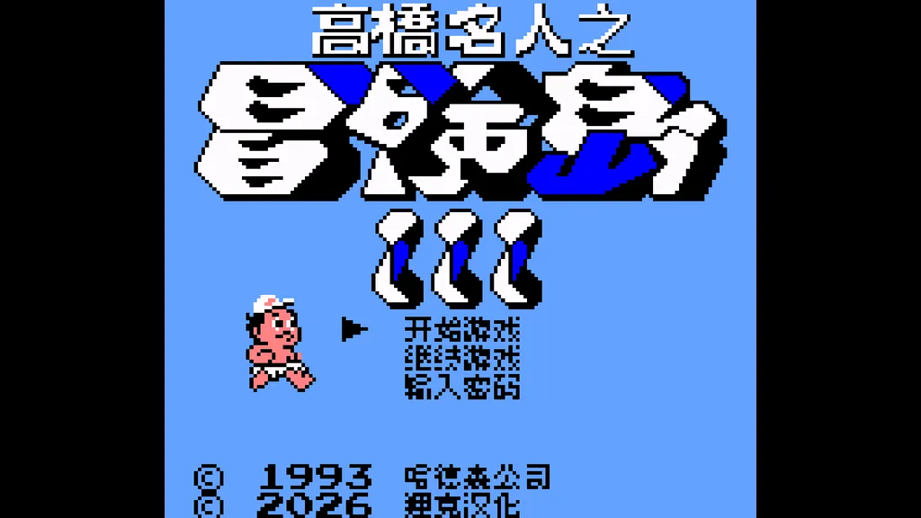 GB(Nintendo Game Boy,任天堂Game Boy)平台《高桥名人之冒险岛III》(日语原名:高橋名人の冒険島III;英语原名:Adventure Island 3),由Hudson Soft开发发行,是《冒险岛》系列第三作,于1993年2月1日在GB平台移植发售,其原作于1992年登陆任天堂娱乐系统。 剧情围绕主角高桥名人(Master Higgins)展开,他的女友Jeannie Jungle被外星人掳走,困在八座岛屿中的某一处,每座岛屿都有饥饿的巨型生物守护,高桥名人需踏上冒险之路,找到并救出女友。 游戏包含8个关卡,玩家可收集斧头、滑板、回旋镖等道具辅助闯关;场景中散落着隐藏恐龙蛋,打破后可解锁五种友好恐龙骑乘,还可能获得奖励或通往下一岛屿的秘密路径,玩法以平台跳跃、战斗探索为主,节奏紧凑,是GB平台经典的动作冒险佳作。 【游戏版本】狸克汉化版 【汉化名单】 汉化:狸克 秘籍: 以所有道具99个的状态开始游戏 在标题画面选择“PASSWORD”(密码),输入密码 0894。 即可在所有道具持有99个的状态下从第1-1关开始游戏。 以所有道具与剩余命数99的状态开始游戏 在标题画面选择“PASSWORD”(密码),输入密码 1984。 即可进入所有道具持有99个且剩余命数为99的状态,并可直接进入全部关卡。 以石斧与回旋镖99个的状态开始游戏 在标题画面选择“PASSWORD”(密码),输入密码 5915。 即可在石斧与回旋镖各持有99个的状态下从第1-1关开始游戏。