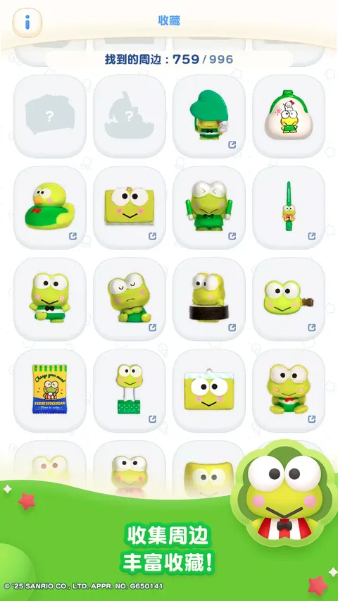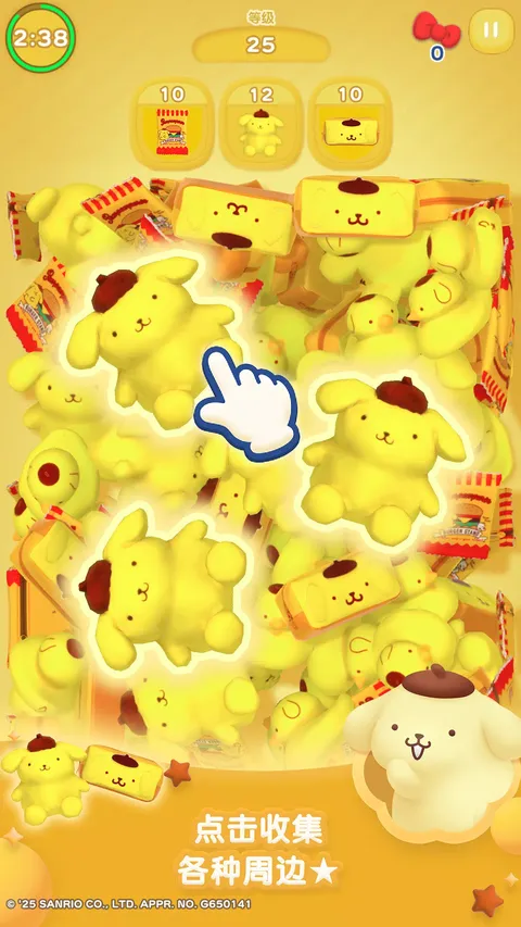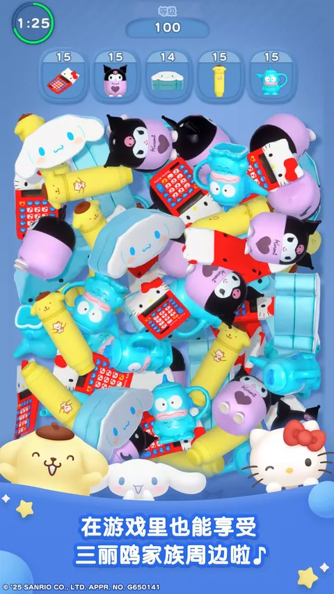 登场周边超过1000种! 从堆积如山的周边中找到3个同款周边,点击它们即可轻松收集, 从经典怀旧周边到最新款周边应有尽有 ◆・■・●・◆・■・●・◆ 可以收集周边的益智游戏 ◆・■・●・◆・■・●・◆ ●以下角色的周边将会登场● 凯蒂猫 / 大耳狗 / 布丁狗 / 帕恰狗 / 酷洛米 / 美乐蒂 / 半鱼人 / 必爱诺 / 小麦粉精灵 / 双子星 / 大眼蛙 / 山姆企鹅 / 帕蒂&吉米 / 茉莉兔 / 酷企鹅 / 大宝 / 丹尼尔 / 许愿兔 / 贝克鸭 / 樱桃兔 / 小雷公三兄弟 / 野猫乐园 / 艾迪与艾美 / 露露露学园 / 巧克猫 / 可乐铃 / 花小兔 / 蹦蹦兔 / 切片妞 / 毛毯熊 / 草莓国王 / 喵喵家族 / 淘气猴 / 蛋黄哥 ●益智游戏● 从堆得满满的周边小山之中,找到3个同款周边然后点击 没有任何复杂的规则,孩子和大人都能轻松畅玩的益智游戏 每次通关都有机会遇见新的周边 ●收藏● 在游戏中出现过的周边会记录在收藏页面哦 从经典怀旧周边到最新款周边,全部都是现实中实际发售过的周边 可以旋转周边的3D模型尽情观察,也不要忘记去查看周边的商品网站哦 ●巡游● 已经在游戏中登场的周边,会在游戏主界面上可爱地巡游 你还可以挑选自己喜欢的周边,打造专属巡游队伍 ●换装● 能够进行主题换装,换上各个角色的特别设计主题 尽情欣赏可爱插画,享受主画面变化的乐趣吧