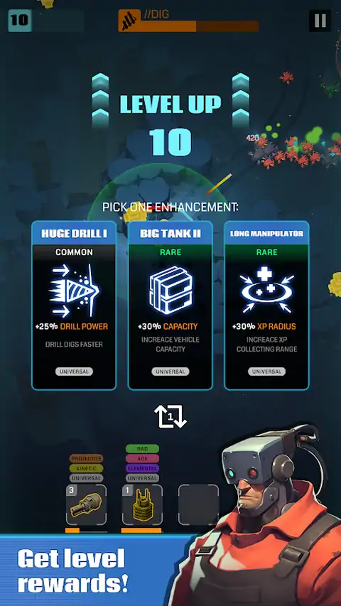 欢迎来到 DigRaid - 休闲射击和 Roguelike 生存的惊险结合,您在残酷的资本主义世界和无尽的冒险中扮演太空自由职业者! 接受贪婪的大公司的致命任务,前往遥远、资源丰富的星球。炸穿外星景观,深入地下挖掘稀有矿物,并击退成群的可怕虫子和强大的 Boss。 尝试各种钻孔机—每种钻孔机都有独特的功能—并研究新技术以提高您的效率和火力。更聪明地挖掘、更努力地战斗、更快升级! 射击、挖掘并生存 升级你的武器和生存技能,对抗一波又一波的外星昆虫和敌对势力。这些行星很危险—而且危险的不仅仅是生物。连植物也想让你死。 保卫你的战利品 您的货物始终受到威胁 - 保护它们免受太空海盗和竞争对手采矿人员的侵害,他们想要分享您辛苦赚来的宝藏。 制定策略并升级 每个关卡都会带来新的选择—从强大的武器到新的车辆。将策略与正确的团队和装备相结合,以生存更长时间并赚取更多收入。 像专业人士一样装备你的球队 组建一支由顽强的自由工作者组成的团队,为他们配备史诗般的装备,并将他们变成势不可挡的资源猎人。只有最聪明、最强大的人才能在这场银河淘金热中生存。