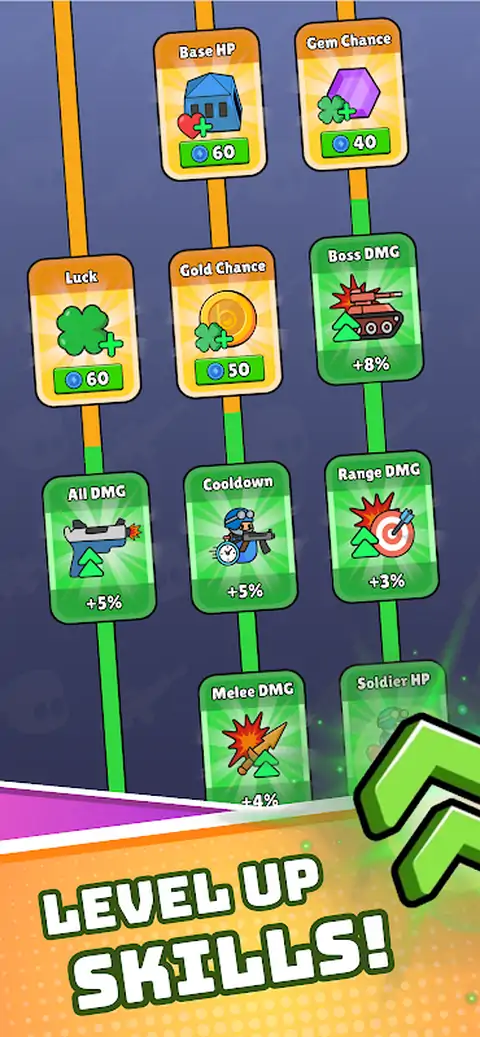 收拾你的小队!观战,赢取战利品! 在《战争之袋》中,关键在于你的收拾方式,而非你的射击方式。 将你的士兵和武器放入你的战斗包中。排列整齐,连接顺畅,组建你势不可挡的军队。每一种连接到士兵身上的武器都会赋予他们生命—步枪、霰弹枪、冲锋枪,应有尽有! 你的部队将与一波又一波的敌人作战,而你则可安坐享受混乱的氛围。 主要特色 背包管理玩法:装备、放置和连接你的士兵和武器。 自动战斗:规划你的阵型,然后看着你的军队征服战场。 单位多样性:解锁并收集数十种现代士兵和武器。 战术深度:尝试不同的布局和小队组成。 极简风格:每场战斗都拥有清晰的视觉效果和令人满意的特效。 轻松无压力的游戏体验:没有紧张的操作—只有明智的决策和令人满意的结果。 你觉得自己能组建出完美的小队吗? 是时候收拾行囊,迎接挑战了!