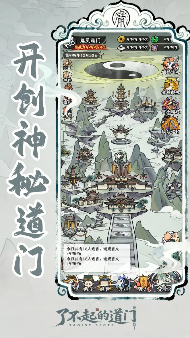 开局一把桃木剑,道门兴衰你掌间!又在一番穿越(loading条加载)后,你将成为破落道观的当代观主... 【重建道门】从扫地除尘开始,亲手将荒山破观建为云间仙门。 【奇葩弟子】随缘招徒,你可能捡到先天道体的天才,也可能招来只会干饭的“关系户”。 【资质检测】用“摸骨术”摸摸弟子根骨,小心别摸到不该摸的地方! 【黑市之王】暗中经营地下坊市,倒卖法器、贩卖“秘籍”,甚至偷偷给对头宗门卖假货。 【香火玄学】在香火殿求签问卦——今日上上签,香火钱翻倍;今日大凶…快关山门避灾! 【炼器鬼才】研发道器,从“驱邪桃木剑”到“渡劫避雷针”,只有想不到,没有炼不出。 【下山搞事】带队除魔抓鬼,是替天行道?还是只为摸金做点“小生意”?你说了算! 振兴道门的路子有很多种,至于节操…那是什么?能吃吗?