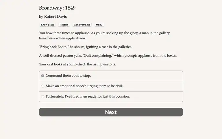 Fight your way to box office glory, while fending off the gangs of New York! Manage a theatre in a game of high-stakes business, dangerous romance, and risky alliances set in the rough-and-tumble world of 19th century New York. You'll brave riots, fires, and political spies as you take on a city of jealous rivals, brilliant artists, and stalwart