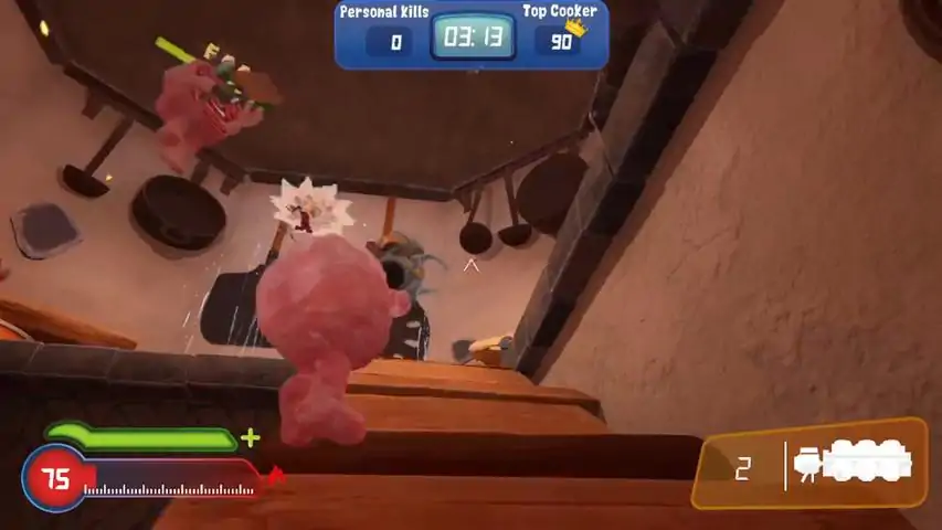 License to Grill is a multiplayer 3rd Person Combat game with up to 8 players. Your goal is to cook your friends in Free For All matches. Take advantage of wacky ragdoll physics to knock your friends into an an oven or tenderize them with a big hammer! Use a variety of wacky and powerful weapons to cook your friends in creative ways. Each weapon has something special about it. Each weapon will heat up your opponents, eventually cooking them! Frying PanYour trusty default weapon that always comes back to you even after being