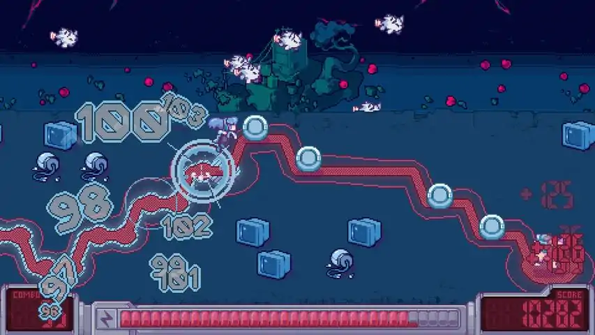 在《Nebula Flow》中,你的狗狗正引领你穿越一个个音乐领域。跟随它的轨迹,配合音乐节奏移动和跳跃,填满你的加速条。定期使用加速来清除道路,否则将被越来越多的障碍压倒。完成每首歌曲并达成目标,即可解锁更多关卡!查看排行榜,看看你的排名——击败好友,提升段位。想发挥创意?使用关卡编辑器制作属于你的挑战,并通过创意工坊与社区分享。支持键盘、鼠标和手柄操作。提供音频延迟设置选项。可自定义游戏元素的颜色。由 Nico 与 Songe 开发。像素画由 Daniel "DanieruArt" Reis 和 Krep_pxl 绘制。原创音乐由 Songe 创作。