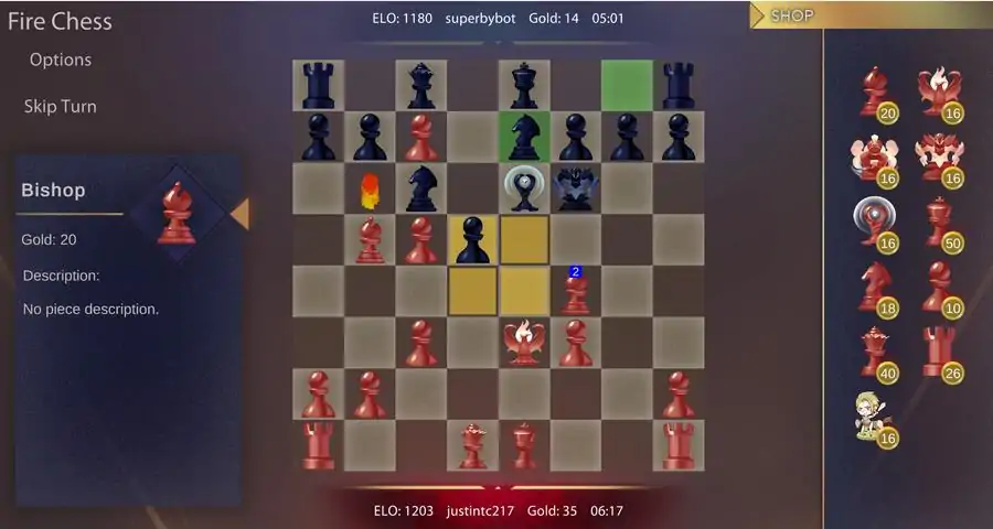 FireChess is a chess-like game that includes elements of economy and spell casting. Join the discord here: Players earn a base gold each turn. They earn additional gold when occupying gold spaces. Gold can be used to purchase pieces from the shop and place them on the board. Special mage pieces can move and use abilities but cannot capture. Double-clicking on a mage allows a player to use their special