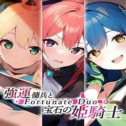 『强运佣兵与宝石的姫骑士 - Fortunate Duo -』是一部描写只有幸运是优点的佣兵成为了姫骑士的随扈,逐渐打下功绩的小说游戏。 原本是由「Black Currant」公司所发售的美少女游戏,现在于『PandaShojo』平台上进行重製,让全世界的玩家都能够享受游戏内容。 ◆游戏简介 在某个酒场赢了自称西洋棋之王的隔日……。 一群精良的士兵来带走了阿尔夫。 「不要多问,跟我们走一趟。雪莉露姫在等妳」 ◆剧情概要 人类正在抵抗来自魔王军的侵略。 此乃后世称为『人魔大战』的时代。 有着为了讨伐魔王而成立的国家的话,也有着趁这个机会发动战争的国家。 不光是人与魔物之间的战争,人与人之间的战争也没有停歇过,世界一片混乱。 好运的佣兵阿尔夫在酒场与同伴一起喝酒的同时, 心中也有总有一天要立下功劳,成为姫骑士的随扈的远大目标。 拥有宝石之名『三大国』的姫骑士、红玉之国的雪莉露姫、翡翠之国的伊芙姫、瑠璃之国的玫雅莉姫。 身为女性也同时是身处讨伐魔王最前线的她们,世人也称之为救世主。 阿尔夫下定决心,要前往三大国的其中一国。 为了成为救世主身旁的士兵――。 ◆角色 ・雪莉露=哈诺瓦ー 「没有我斩不断的事物。无须担心」 威风凛凛,有着国内顶级剑术身手的「红玉之国」的姫。 听到阿尔夫赢了西洋棋之王后,便受到雪莉露的雇用。 个性坚强都靠力量解决问题,与阿尔夫共同行动后,慢慢改变了想法。 ・伊芙=谢希鲁 「你跟我体内流动的魔力的相容度很好呢。」 美丽且擅长兵法的「翡翠之国」的姫。 由于接受了长年侍奉在伊芙的魔法师的助言,将阿尔夫选为随扈。 身为侧室的女儿,憎恨身为男性就佔尽好处的兄长们,因此不擅长面对男性。 ・玫雅莉=高德文 「哥哥……? 你是哥哥对吧!?」 为了替逝世的兄长报仇而拿起武器的「瑠璃之国」的姫。 无法接受兄长的死亡,以哥哥为称呼着阿尔夫。 虽然心地善亮且胆小,完全不适合战斗,跟着阿尔夫共同成长。 ・阿尔夫=欧尔科特 整天想着想要立下大功劳的佣兵。 凭着天生的好运气,在无数的战场活了下来。 那个好运气,让他成为了姫骑士的随扈。