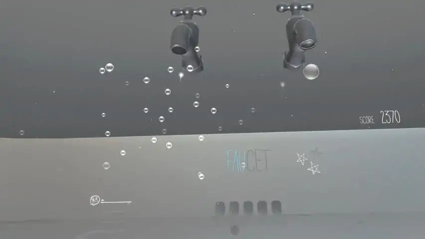 'FAUCET VR' is a VR game based on the popular casual mobile game for healing 'FAUCET'. Enjoy dabbling in a fantastic virtual space popping falling drops from faucet. Sewer monsters would interrupt your healing time by trying to block the overflow holes, but don’t worry. You will have a chance to enjoy another kind of pleasure. You can get special rewards by collecting the flying alphabets and stars falling from the sky with a scoop net. When you are in a danger, try using ice and fire. They could be quite helpful. One more thing. We recommend you to to just relax yourself listening to beautiful music sitting on one side of the sink.