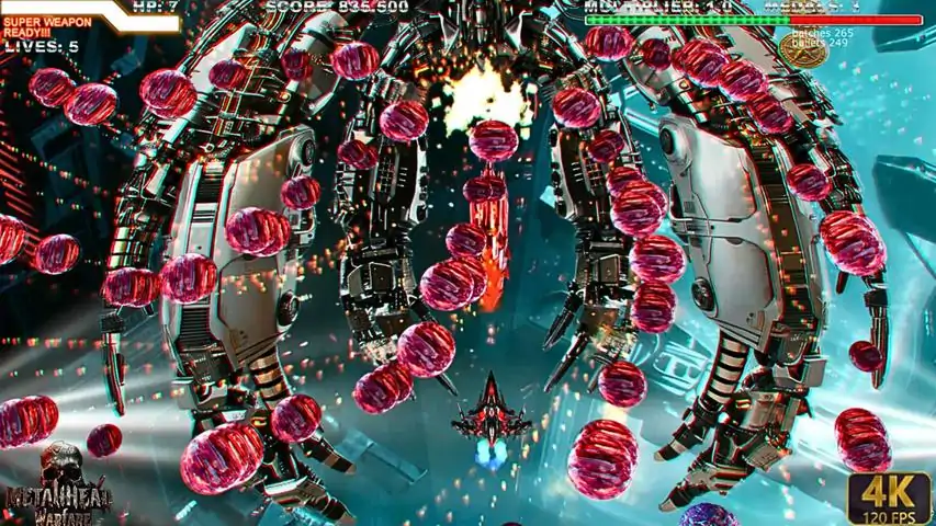 金属头战争》(Metal Head Warfare)是最好的快节奏射击游戏之一,采用 4K 和 120 FPS 格式,具有现代感和出色的图形效果,是新一代街机游戏中的佼佼者,玩家在游戏中收集超能力,变得越来越强大,在一个濒临深渊的世界中击败混乱和邪恶。游戏模式 这是一款单人竖版射击游戏,包含 10 个相互连接的世界,玩家必须在这些世界中与 Boss 搏斗,并夺回奖牌,以释放特定世界中被囚禁的人。控制 以下是玩家每种能力的具体按钮,在整个游戏过程中,玩家必须回收透明水晶球内漂浮的强化剂,使其变得更加强大和狂暴。每个世界都有其独特的惊喜和难度,使游戏紧张刺激,效果极佳。