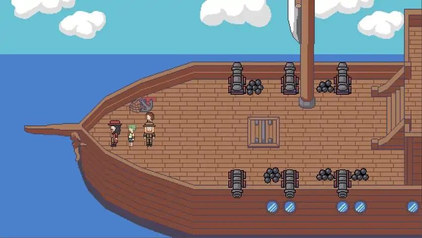 Barako and his crew are a group of benevolent pirates who fight fist to fist against a variety of enemies, going on adventures and giving their treasure to the poor. But one day, they find a 10 year old boy hidden among their latest plunder... Are you ready to go on a high seas adventure? Join Barako and his crew as they fight against rival pirate crews, monsters, hunt for buried treasure and sail the seas in an exciting pirate themed adventure! Features: Passive skill system Each crew member has their own set of unique skills which only they can use outside of combat. For example, Barako can lift heavy objects, Vincenzo can jump a long distance and play musical instruments, Cedric can heal NPCs and can detect useable herbs, just to name a few! Just choose which character you want to use by placing them at the head of the party! Combat isn't just mashing attack! The player is encouraged to use a variety of skills due to cooldowns and each attack having unique properties and status effects attached to them! Tools aplenty! Dig for buried treasure with a shovel, bust open locked doors with a crowbar, light dungeons and set fires with a lantern, and fish for aquatic life with a fishing rod. Items won't be automatically used either, you have to use your brain and use them manually! Trauma Points Also features the trauma point system. The more TP a character accumulates by getting hit, the more damage they will take. Can only make TP go down by resting at an inn or at certain save points. Gameplay Trailer Credits Battle Music - Let's Go Do Pirate Stuff (Instrumental) by Voltz Supreme Victory Music - Monkey Island Band (Looping) by Eric Matyas