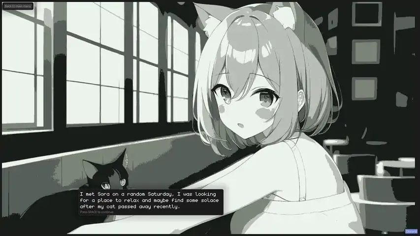 "Neko Dating Sim" is a rhythm game where the player take on the role of a young man who is dating 3 neko (cat girl) characters. The gameplay revolves around a simple yet addictive rhythm game where players need to click in time with the beat of a visual meter. As players progress through the game, they will unlock new levels and story elements about their dating experiences with each neko girl. The story will be told through visual novel-style cutscenes and will explore the various personalities and characteristics of the neko girls. Players will also be able to unlock images of each girl as they progress through the game. The images will be drawn in a cute and anime-inspired style, adding to the game's overall charm. Features: - 3 neko girls to choose from with their unique storyline - Possibility to customize girls with 4 different accessories - Simple yet addictive gameplay with no tutorial needed - Sexy sound effects - Even sexier images, accessible from the story as well as the gallery - Retro pixel art style as well as cute anime drawn style