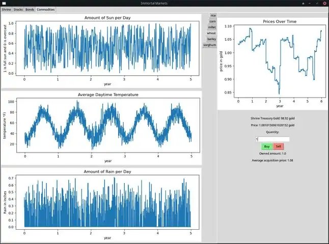 Please play the demo before purchasing. The free demo has most of the functionality of the full game, but it does not have bonds or commodities. The full version includes those features. In this game, you play as a deity that can gamble their shrine treasury on various financial instruments, including stocks, bonds and commodities. Upgrade your shrine with your winnings to perform "miracles" to manipulate financial markets. Do not get attached to your first dozen player characters; this game is quite difficult, with an incredibly steep learning curve. Do not be decieved by the apparent simplicity. There are meant to be dozens of hours of gameplay in the demo and hundreds of hours of gameplay in the full game. This game is meant to be played with a pencil and paper or with a second monitor and spreadsheet. To give the game the same thrill that one might experience as a quant trader or investor, statistical models have been used to mirror the United States stock market. The financial markets of the world are generally well-correlated, so you will not miss anything (or at least that is the idea). Find all ten or so profitable techniques.