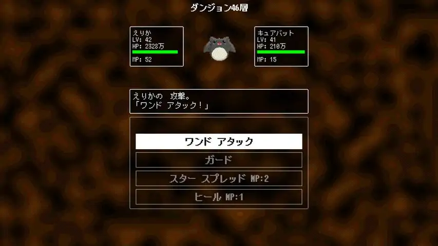 王様は入ってきた魔法少女に語りかけた。 「おお、えりか殿!そなたを待っておったぞ!街の外れにダンジョンの入り口が現れて人々が恐怖しておる。 中には魔物がいるらしい。奥底に何があるのか見てきてくれ。」 えりかは答えた。 「はい。でも、まだこの魔法のステッキで殴ることしかできないのですが。」 ダンジョンの深淵に何がいるのか。 どんどん強くなる魔法少女の物語。 ◇フィーチャー 魔法(※)を選んで敵を攻撃するレトロJRPG風ターン性ハックアンドスラッシュです。 マップフィールド等の移動はなく、次々に敵が現れます。 レベルアップすることにより、最終的には無量大数を超える体力、攻撃力になります。 バトルや途中の寸劇ストーリには音声がついてます。 エンディングまで3〜5時間程度。 ※最大4択であり物理攻撃を含む ◇プレイの配信について このゲームのプレイについては、ライブ配信・動画のアップロードが可能です。