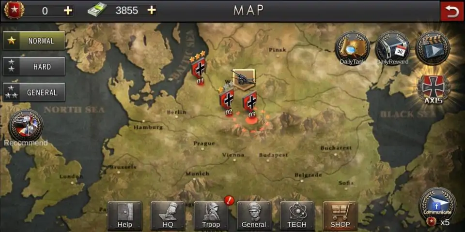 率领你的铁血军团,去征服所有不服! 最好的二战军事策略游戏,书写你的名将传奇! >>模拟与策略 这是一个完美沙盒玩法的军事策略游戏。经典战棋回合制操作,地形与兵种的搭配,战争迷雾系统,可以让你完美运用各种战术,一个拥有无限可能的战争策略游戏。 >>名将系统 隆美尔、古德里安、曼施坦因、蒙哥马利,道丁...等世界历史名将,你都可以用你的魅力将他们招致麾下,每位名将独有的属性和特殊技能,能够帮助你提升部队作战能力。 >>丰富的可操控的单位 骑兵、步兵、坦克、火炮、战机、潜艇、重巡洋舰。以战养战,不断占领更多的资源,发展生产,招募更多的部队,扩大你的版图。 基于回合制操作,你可以完美的指挥这些部队,应对更复杂的战场态势,进攻或防守,由你决定。 >>丰富的战役内容 30 历史战役:不列颠战役、诺曼底登陆、市场花园行动等等 7大战场:亚洲、非洲、欧洲...你的战火无可阻挡 2个战争冲突阵营:轴心国和盟军,你的支持将决定天平的倾斜 全向作战空间:海战、空战、陆战 >>更具创新性的战略设计 战争的迷雾,地形约束 生产建设,以战养战 士气系统,不要陷入包围 炮兵需要修筑阵地,你需要合理运用 重型坦克是战场之王。请大胆使用 记得每天登录,领取奖励 >>写在最后,最真心的话 我们会继续更新,但是需要耐心等待 我们希望能够听到更多的建议,帮助我们做出更好的二战游戏 最后,这场席卷全球的战争,使数十亿人蒙受苦难,由衷感谢所有反法西斯联盟的英雄们! 愿人类珍惜和平。 愿我们永远不再经历战争。