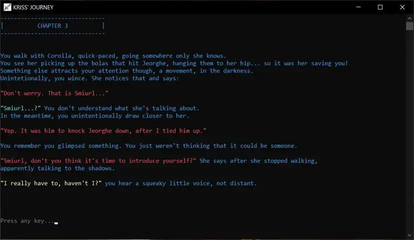 The IdeaI always wanted to bring my stories to life through a video game. Looking at stories of legendary developers of the games of my childhood (Prince of Persia, Myst, just to name a couple) I got nostalgic and I thought:"Hey why not make an Interactive Fiction like they used to do back in the days when I didn't even know what a computer was?"The StorySo I took my old science-fantasy novel, which I wrote when I was in high school (before isekai was mainstream) and started adapting it to be an interactive experience to be run inside a terminal, with a minimal (we may say absent) interface and with a command line to type commands when