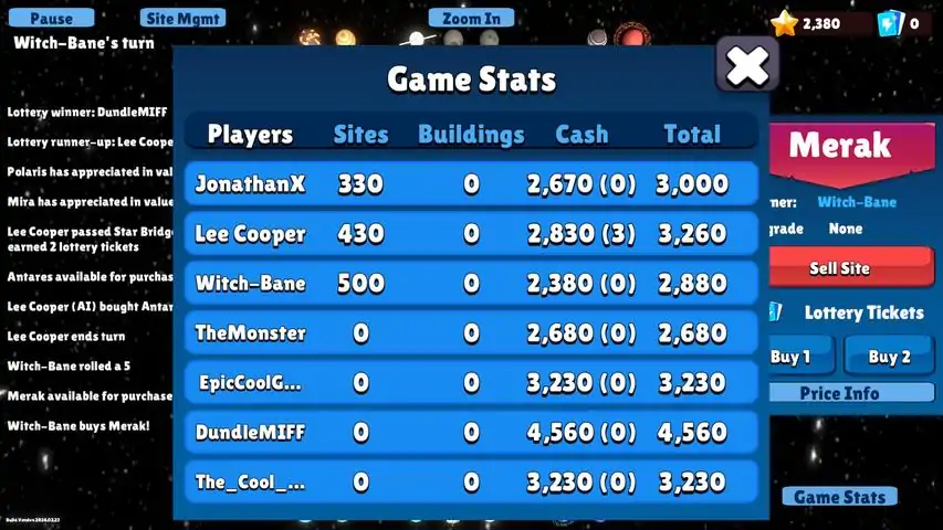 Explore the vastness of strategic gameplay with our space-themed board game! players use star-currency to acquire interstellar sites. Challenge friends in turn-based, single-device matches, competing to dominate the board. Introducing the Starbridge feature, players can pay a small fee to traverse half the cells, adding a tactical twist. Accumulate star-currency to unlock the thrilling Lottery, where top performers receive rewards, and random sites experience a 25% value boost. Take loan to settle amount due to opponents and also to invest on upgrading your
