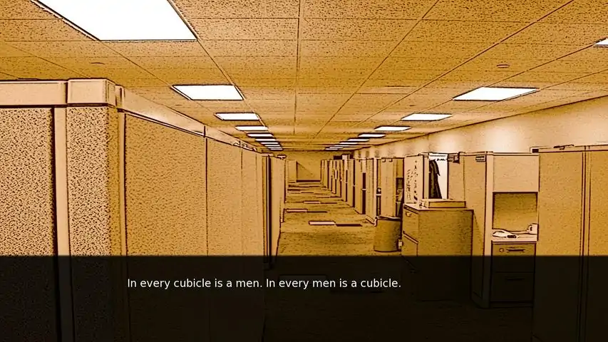 Deep in the never-changing autumn, surrounded by the tall buildings of the city. Men in suits move like shadows between the asphalt bridges. Can the songs of their childhood and the sweet taste of a drink make them forget the lies they find in a melancholic sunset?A short almost-linear novel game written for the common man.-Reading time of 5-10 mins.-Almost no sounds, or music. Disturbing noise loops.-Graphics picturing the loud emptiness of a city full of people.