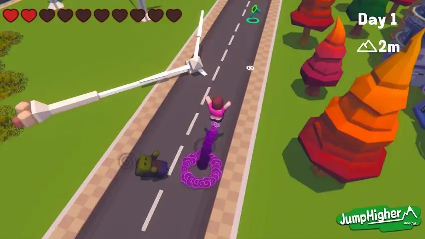 游戏特色 鼠标指向位置控制角色朝向; 长按空格键跳跃,跳跃距离取决于按下的时长; 跳到瞬间会放屁,能把僵尸崩飞! 游戏内有多种僵尸会来阻止你前往最高点! 游戏分白天晚上,晚上会出现更强力的僵尸! 开始你的冒险吧!