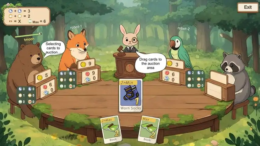 你将进入一个充满智慧对决的动物王国。国王的理财顾问即将退休,各大动物家族纷纷出动,通过拍卖与投资一决高下——胜者将成为掌控王国财富的关键人物!本作是一款结合资源管理与竞拍机制的策略游戏。你将扮演不同风格的动物角色,在森林中收集物品,并在王国举办的盛大拍卖会上出价竞得它们。通过聪明的组合、精准的判断与灵活的资金运作,你需要在激烈的竞拍中脱颖而出,赢得最多的货币,最终坐上理财顾问之位。主要特色: 策略竞拍玩法:把握时机、观察对手、制定竞价策略,在回合制拍卖中获得优势。 单人与多人模式:无论是挑战 AI 对手,还是与好友一较高下,都能享受紧张刺激的智谋对决。踏入这个色彩斑斓却充满权谋的动物世界,用你的财商与智慧赢得属于你的荣耀!