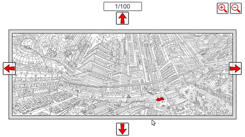 SEARCH ALL - FOXES is a game in the genre of "hidden object", in which you need to find all the foxes on a large location drawn in the style of "doodling". The location shows a Chinese city. In the foreground of the location there is a hypermarket with parking for cars, a small pond and a shopping area (market), and two helicopters are flying in the sky. In the middle of the location there is a long bridge for a high-speed train. Behind the bridge, there is a megalopolis, that is, high multi-storey buildings. On one of these houses sits a giant ferocious fox. Behind the multi-storey buildings, you can see a building from which harmful smoke rises into the
