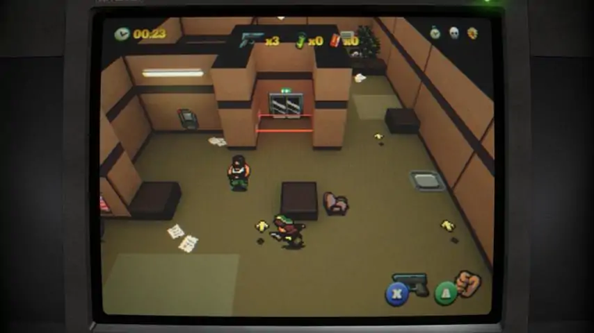 You are the cop Kommissar Daniela Steinfels and want to stop evil terrorists - sneak inside a guarded building and get through five floors without being detected. Face a mix of stealth and puzzle game with a simple control scheme which demands you to think and wait for the right moment. Your only tools are sneak attacks and your hand gun to find the fastest way to complete the levels. It's for you to decide if you want to shoot the enemies or if you'll reach the level's end by avoiding the use of your weapon. DanCop - Daniela of Duty contains: • 31 levels in total • 4-6 hours gameplay, even more if you want to find the secret medals • no kill goals for a harder challenge • time goals for speed runners • 2 different endings Discover a game that feels like coming right from the late 90's but with a more modern approach. For the best experience we recommend to use a gamepad, since the game has a gaming console feel to it. This game is for players who like: • genre mash ups • 32 bit consoles look & feel • their patience being tested