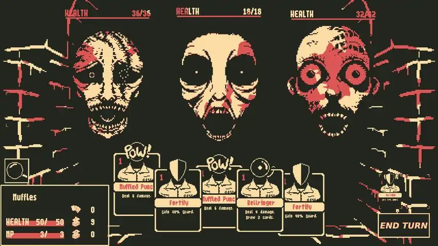 Gameplay FeaturesUnlockable faces to swap identities and gain new abilitiesDeckbuilding card combat without grinding or random encounters A colorful cast of absurd criminal monstersStatuses that include: Panic Attack, Looking for Shiv, and PoisonVisuals boasting 3 whole colorsA great soundtrack you need to see to believeA serial story released in episodesPuzzles that aren’t TOO tediousDee is in this gamesIncluding Characters Such AsMuffles: Faceless inmate with no idea how they ended up in prison. Did the surgeons really need to sew their mouth shut?Scarlet: Pseudo-religious figurehead who has promised freedom in exchange for the Warden's head.Shatter: Gang leader of the WARDEN KILLERS. He's mostly just recruited Pettys for now- but just you wait! Constant: Anxious android security officer. He's gotten a bit addicted to shocking himself to help clear his mind. I'm sure that will end