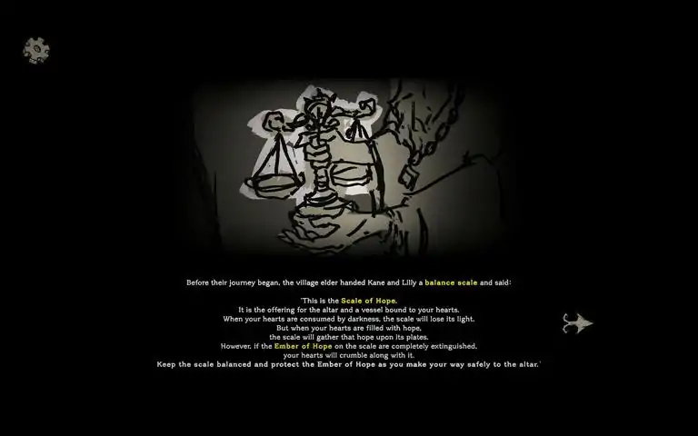 Balancing HopeManaging the Twins’ HopeAssigning cards to the twins adds hope to each side of the scale. If the difference in their hope grows too large, the scale will tip, and its balance will begin to falter. When the scale tips completely and balance cannot be restored, its health decreases. Additionally, failing to accumulate enough hope to surpass the set despair value for each trial also reduces the scale’s health. If the scale’s health is fully depleted, the journey can no longer