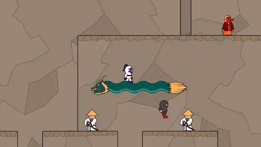 Help Yin Yuh, a cookie-loving spirit, fight his way through hordes of ninjas and warriors to claim an ancient relic. Which he will then sell for all of the cookies he could ever want. This arcade style hand-drawn game takes you through 4 areas, 20 fast-paced action-packed levels, and comes with 3 difficulty settings. Jump and drop between different platforms, stomp on your enemies, and use teleporting portals to your advantage. Even ride a dragon! Join Yin Yuh in his epic quest for cookies!