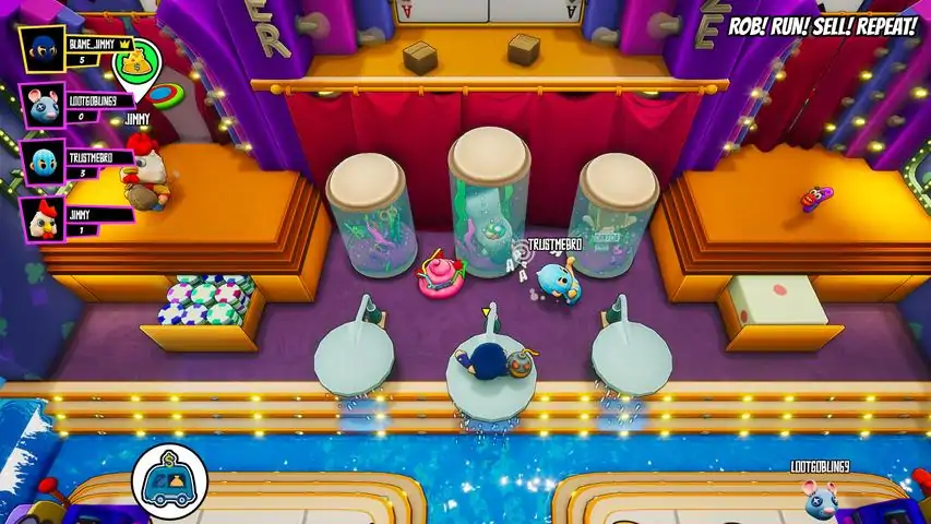 神偷模拟器在这款欢乐的竞技游戏中,您将成为真正的江洋大盗,为巨额财富不惜铤而走险。珍宝严加看守、时间所剩无几,竞争对手们正密谋诡计。向整座城市证明谁才是盗界王者!多模式=多倍欢乐丰富劫案与模式任君选择。要么成为全能大师,要么至少挺直腰板从混战中脱身盗窃是场狂欢与好友或陌生人同台竞技:推搡、射击、爆破、陷害、破坏、躲藏。不惜一切赚取积分勇夺冠军宝冠,但重要的不是结果而是过程!优雅地犯罪谁说盗贼必须黑衣蒙面?穿上考拉服、外星人装、椰子壳...或是直接套个纸袋在头上。这座城市从未见过如此时髦的劫案梦幻团队或独狼行动组建4人精英小队还是单枪匹马行动?选择权在您手中!完成一系列精彩(或翻车)劫案,赢取盗贼锦标赛冠军宝座,登顶排行榜"游戏情节100%真实。我就是这么干的"——自称"世界第一神偷""史上最佳游戏!我儿子玩得废寝忘食!"——开发组某成员母亲"那个圆形陷阱先别碰,求求了"——饱受折磨的测试员