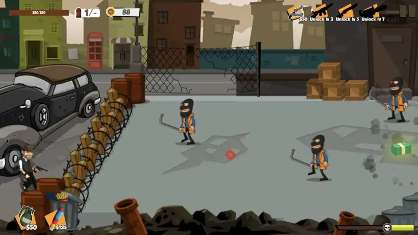Crazy Mafioso is a addicting multi-level survival game. You must defend your position against formidable gangsters. Don`t let yourself be killed! Upgrade your barricades, weapons and gun power. Kill and earn game money. It will be more difficult with each passed